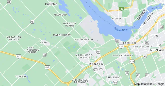 Arnprior, Blacks Corners, Blakeney, Fallowfield, Kanata, Lakeside, Marchwood, Mississippi Mills, Munster, Pakenham, Perth, Smiths Falls, South March, Stittsville, Twin Elm