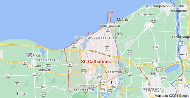 Bethel, Bevan Heights, Cedar Bay, Clifton, Dunville, Effingham, Elco Beach, Fort Erie, Lundy's Lane, Niagara, Niagara Falls, Niagara Falls South, North Pelham, Orchard Park, Port Cobourne, Sherkston, Sherkston Beach, Silver Bay, Silvertown, St. Catharines, St Davids, Stamford, Welland